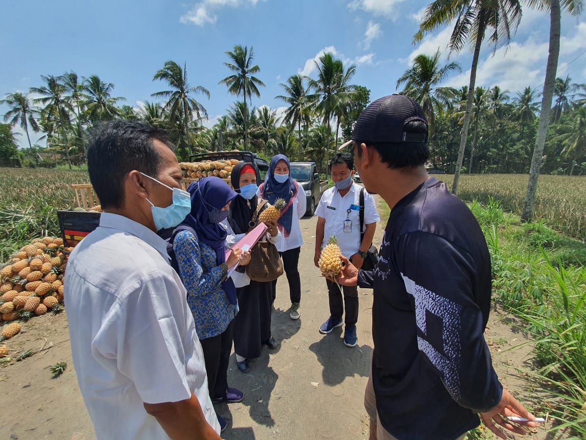 Sekretaris Dinas Pertanian dan Pangan Kabupaten Blitar Ir. Nevi Setya Budiningsih, MMA dan Kasi Perlindungan Tanaman Fauzia Laame Sp. bersama Ir. Agus Riyadi dari UPT Proteksi TPH Jawa Timur, melaksanakan evaluasi petani dalam Budidaya Tanaman Nanas di Desa Sidorejo Kecamatan Ponggok Kabupaten Blitar. (30/09/2020)